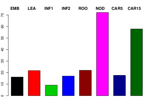 | NOD | Developing tillers at six leaf stage, 3rd internode | 30.2541 | 26.0326 | 22.753 | 72.1662 |