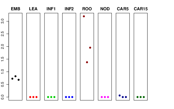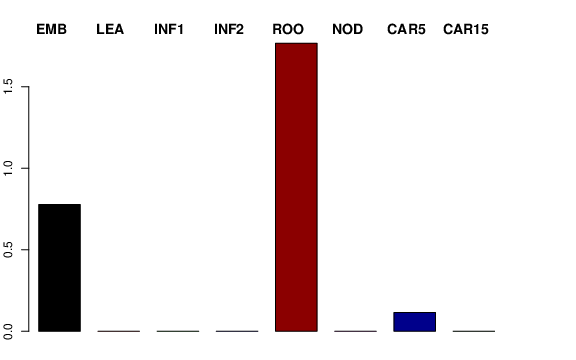 | ROO | Roots from the seedlings (10 cm shoot stage) | 3.1945 | 1.37706 | 1.95459 | 1.76785 |
