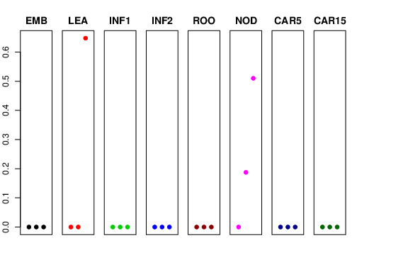 | ROO | Roots from the seedlings (10 cm shoot stage) | 0 | 0 | 0 | 0 |