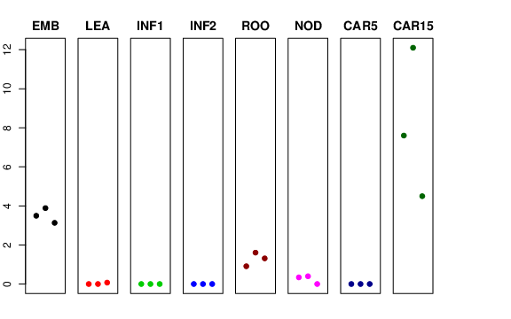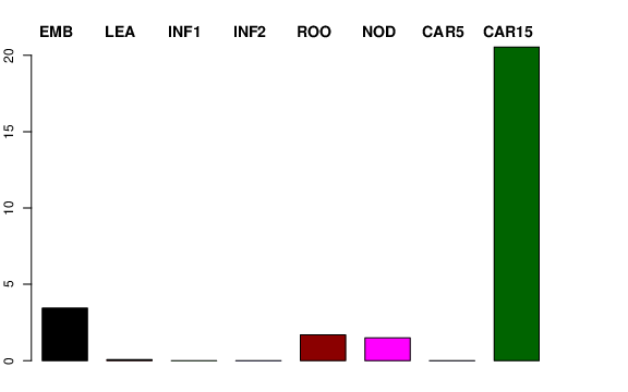 | ROO | Roots from the seedlings (10 cm shoot stage) | 0.909063 | 1.6075 | 1.31202 | 1.68378 |