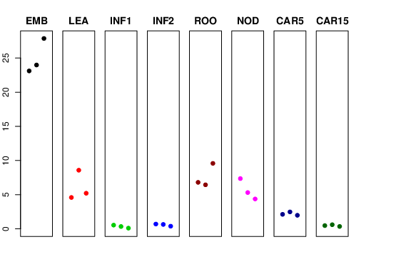 | ROO | Roots from the seedlings (10 cm shoot stage) | 6.80343 | 6.44524 | 9.5829 | 8.33058 |
