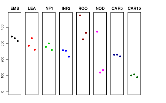 | NOD | Developing tillers at six leaf stage, 3rd internode | 373.577 | 119.299 | 134.914 | 0 |