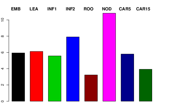 | ROO | Roots from the seedlings (10 cm shoot stage) | 1.41877 | 3.21268 | 3.38413 | 3.23285 |
