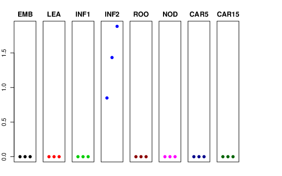 | ROO | Roots from the seedlings (10 cm shoot stage) | 0 | 0 | 0 | 0 |