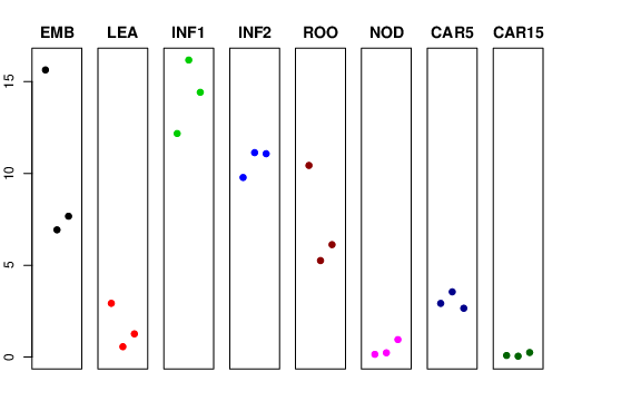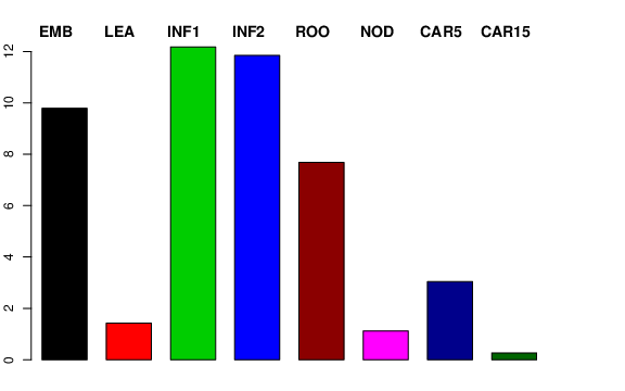 | ROO | Roots from the seedlings (10 cm shoot stage) | 10.4383 | 5.25445 | 6.12223 | 7.68134 |