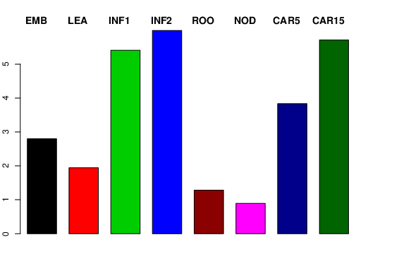 | ROO | Roots from the seedlings (10 cm shoot stage) | 0.285424 | 1.61945 | 1.60529 | 1.28485 |