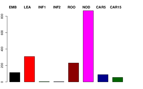 | NOD | Developing tillers at six leaf stage, 3rd internode | 257.075 | 299.027 | 75.8788 | 867.176 |