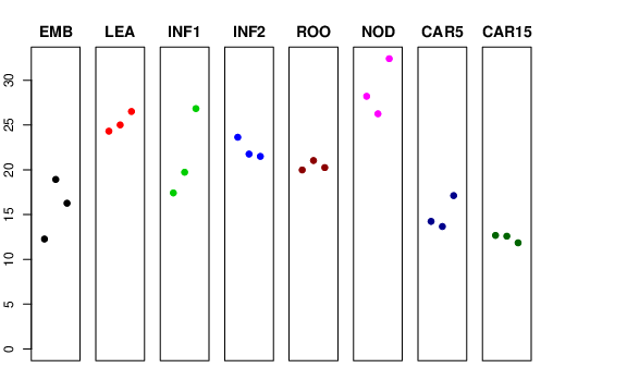 | NOD | Developing tillers at six leaf stage, 3rd internode | 28.2035 | 26.2515 | 32.4014 | 95.0485 |