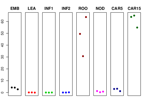 | ROO | Roots from the seedlings (10 cm shoot stage) | 49.4899 | 30.6995 | 63.693 | 43.9857 |
