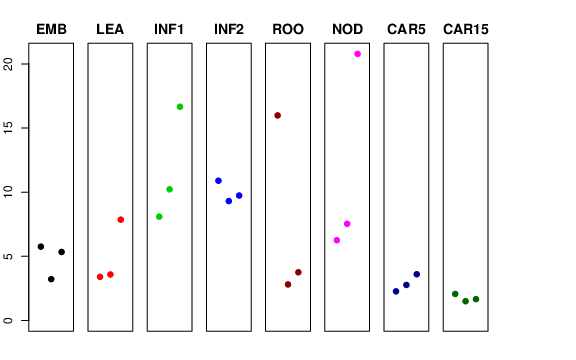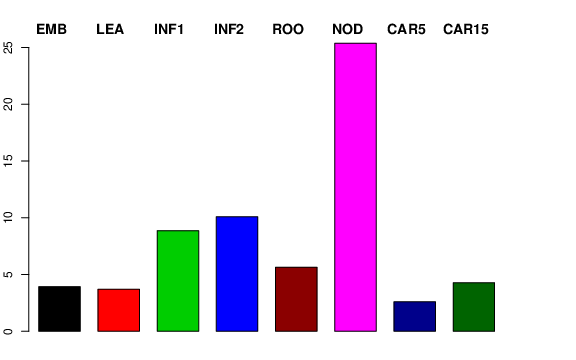 | ROO | Roots from the seedlings (10 cm shoot stage) | 15.9849 | 2.81177 | 3.75975 | 5.63484 |