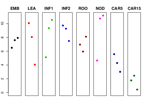 | ROO | Roots from the seedlings (10 cm shoot stage) | 6.96151 | 5.94804 | 8.10702 | 0 |