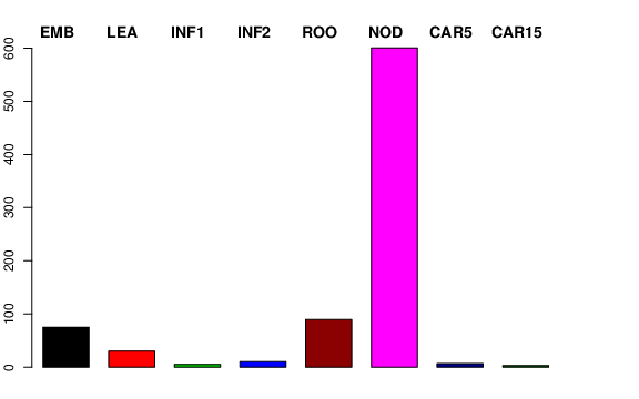 | NOD | Developing tillers at six leaf stage, 3rd internode | 139.603 | 133.87 | 114.295 | 600.606 |