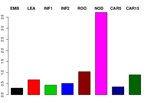 | ROO | Roots from the seedlings (10 cm shoot stage) | 1.20749 | 1.11948 | 1.45339 | 1.04427 |