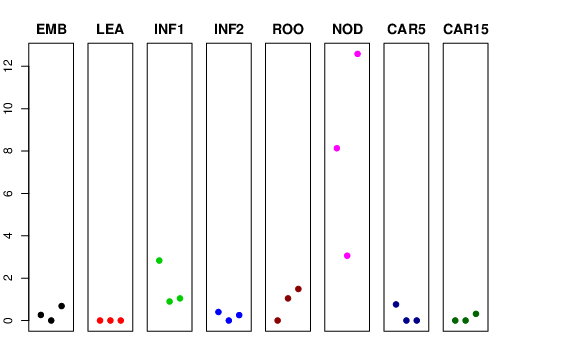 | INF2 | Developing inflorescences (1-1.5 cm) | 0.401215 | 0 | 0.255356 | 0 |