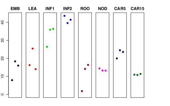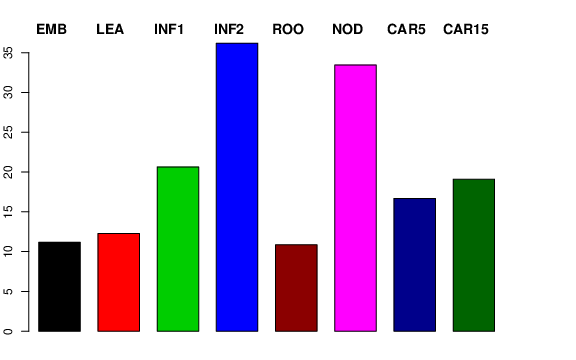 | ROO | Roots from the seedlings (10 cm shoot stage) | 1.79437 | 14.1324 | 16.3571 | 10.8543 |