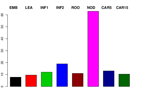| NOD | Developing tillers at six leaf stage, 3rd internode | 15.9755 | 20.5674 | 26.3723 | 62.9319 |