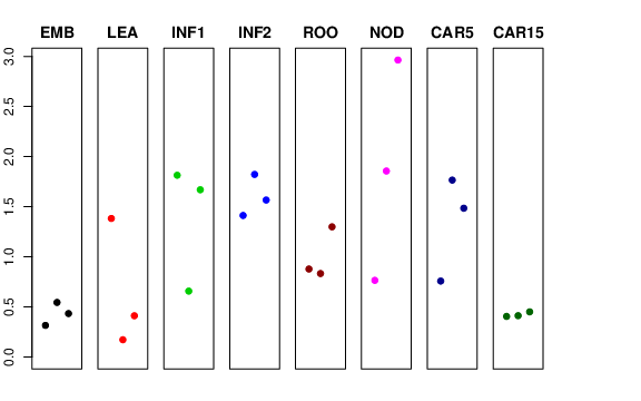 | ROO | Roots from the seedlings (10 cm shoot stage) | 0.878043 | 0.833162 | 1.29904 | 1.54609 |