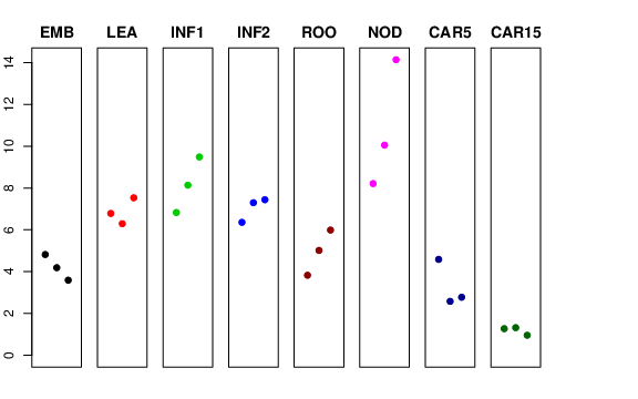 | ROO | Roots from the seedlings (10 cm shoot stage) | 3.82628 | 5.01474 | 5.9879 | 0 |