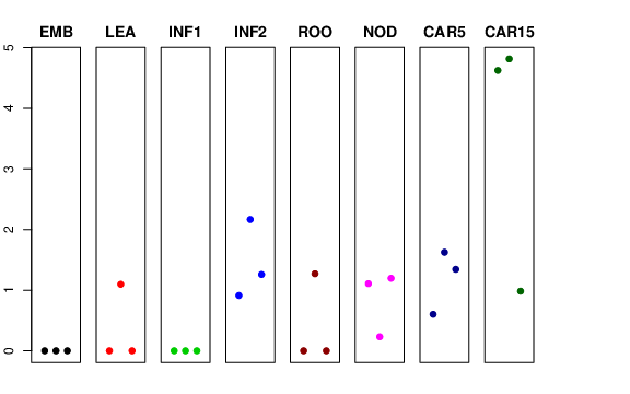 | ROO | Roots from the seedlings (10 cm shoot stage) | 0 | 1.27114 | 0 | 2.47507 |