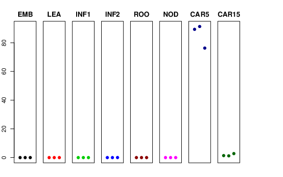 | ROO | Roots from the seedlings (10 cm shoot stage) | 0 | 0 | 0 | 0 |