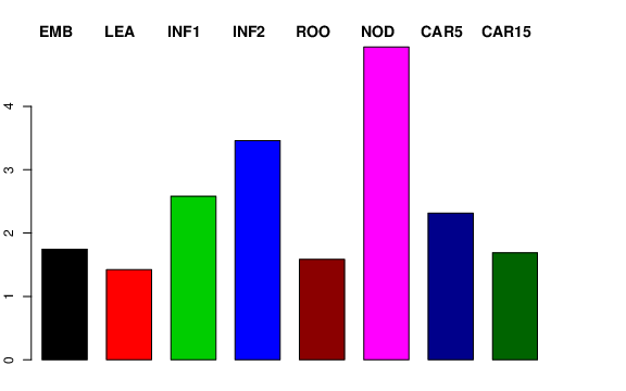 | ROO | Roots from the seedlings (10 cm shoot stage) | 2.62238 | 0.46593 | 3.08347 | 1.58426 |
