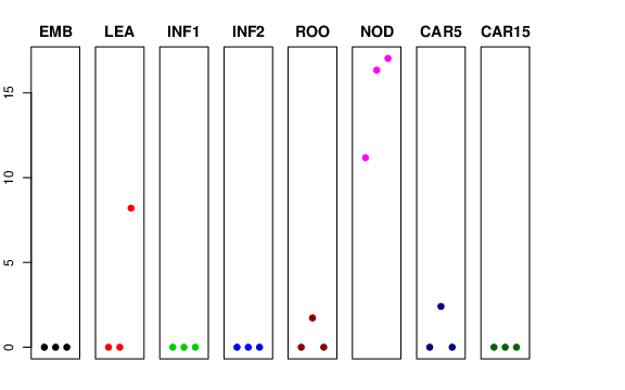 | ROO | Roots from the seedlings (10 cm shoot stage) | 0 | 1.724 | 0 | 0 |