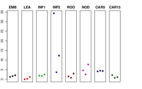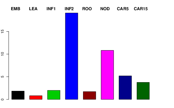 | ROO | Roots from the seedlings (10 cm shoot stage) | 1.45143 | 0.782387 | 2.97495 | 1.71247 |