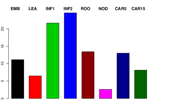 | ROO | Roots from the seedlings (10 cm shoot stage) | 7.69229 | 12.3633 | 9.58791 | 13.4317 |