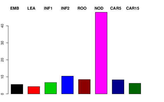 | NOD | Developing tillers at six leaf stage, 3rd internode | 4.83117 | 15.0478 | 11.9705 | 48.0201 |