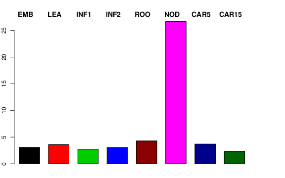 | NOD | Developing tillers at six leaf stage, 3rd internode | 4.81758 | 10.1336 | 6.618 | 26.7091 |