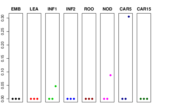 | ROO | Roots from the seedlings (10 cm shoot stage) | 0 | 1.55637e-05 | 0 | 0 |