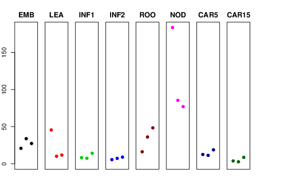 | NOD | Developing tillers at six leaf stage, 3rd internode | 183.445 | 85.3968 | 76.9925 | 225.347 |
