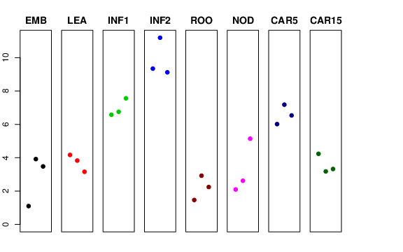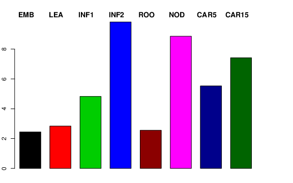 | ROO | Roots from the seedlings (10 cm shoot stage) | 1.46077 | 2.91934 | 2.24071 | 2.55643 |