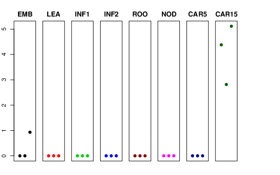 | ROO | Roots from the seedlings (10 cm shoot stage) | 0 | 0 | 0 | 0 |