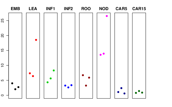 | ROO | Roots from the seedlings (10 cm shoot stage) | 6.72445 | 3.24343 | 5.90271 | 4.96858 |