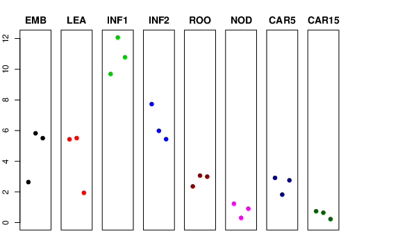 | ROO | Roots from the seedlings (10 cm shoot stage) | 2.36175 | 3.0649 | 2.99815 | 4.16526 |