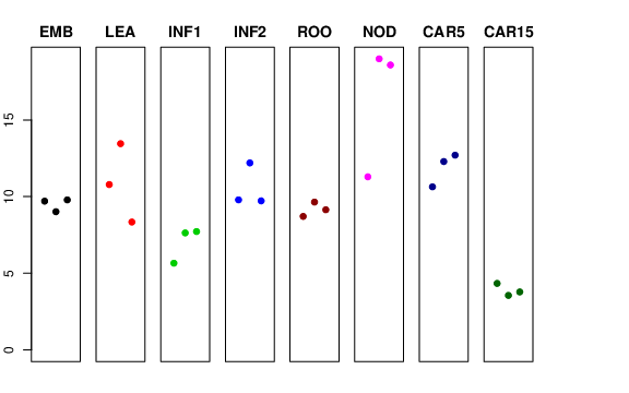 | ROO | Roots from the seedlings (10 cm shoot stage) | 8.70825 | 9.64315 | 9.14211 | 0 |