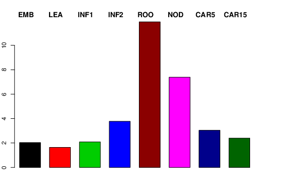 | ROO | Roots from the seedlings (10 cm shoot stage) | 0 | 4.17073 | 0 | 11.917 |