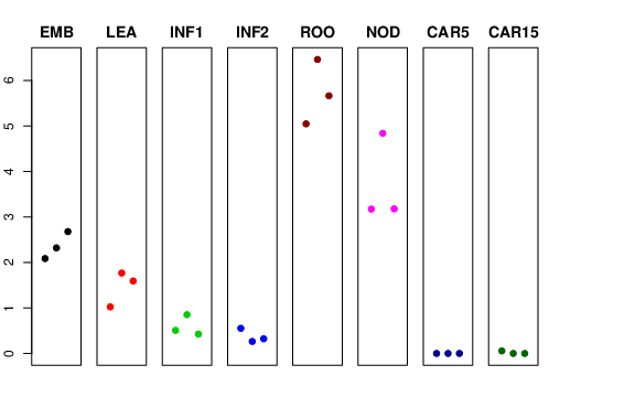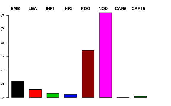 | ROO | Roots from the seedlings (10 cm shoot stage) | 5.04726 | 6.46339 | 5.66443 | 6.90599 |