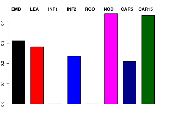 | ROO | Roots from the seedlings (10 cm shoot stage) | 0 | 0 | 0 | 0 |