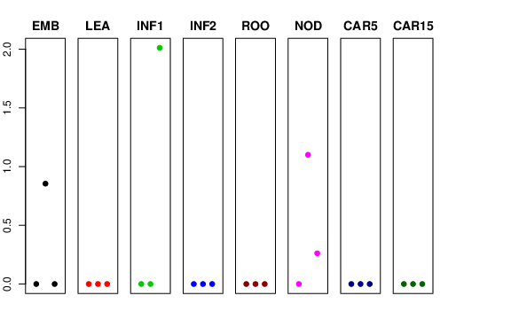| ROO | Roots from the seedlings (10 cm shoot stage) | 0 | 0 | 0 | 0 |