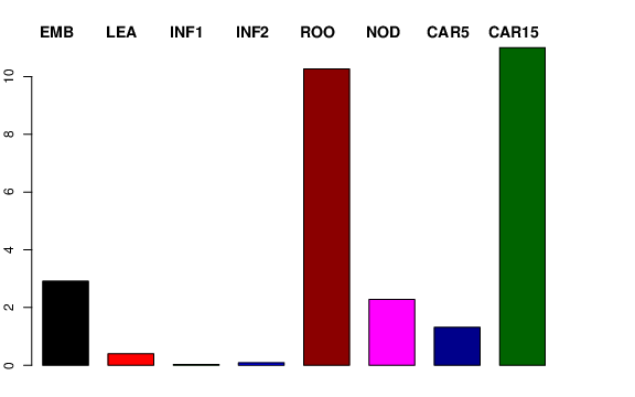 | ROO | Roots from the seedlings (10 cm shoot stage) | 11.3233 | 7.10403 | 9.67855 | 10.263 |