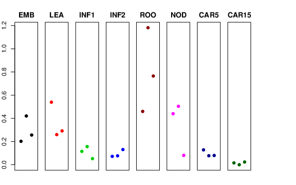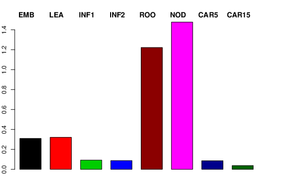| ROO | Roots from the seedlings (10 cm shoot stage) | 0.4598 | 1.18199 | 0.765216 | 1.22144 |