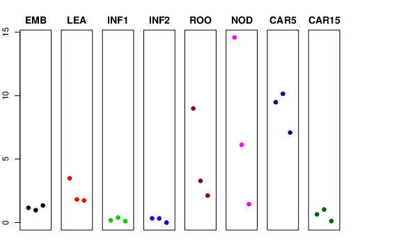 | ROO | Roots from the seedlings (10 cm shoot stage) | 8.98784 | 3.28268 | 2.1271 | 4.18673 |