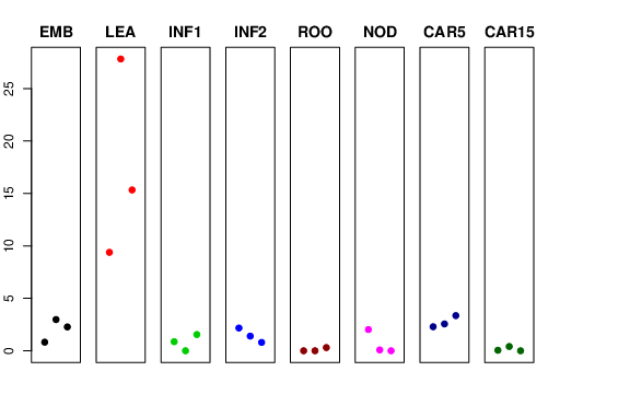 | ROO | Roots from the seedlings (10 cm shoot stage) | 0 | 4.94878e-05 | 0.304797 | 0.0180945 |