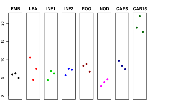 | ROO | Roots from the seedlings (10 cm shoot stage) | 8.32108 | 8.83125 | 6.73558 | 10.8159 |