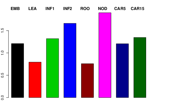 | ROO | Roots from the seedlings (10 cm shoot stage) | 0 | 0.573189 | 1.15438 | 0.758848 |