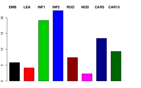 | ROO | Roots from the seedlings (10 cm shoot stage) | 4.3903 | 6.59002 | 6.31541 | 7.41719 |
