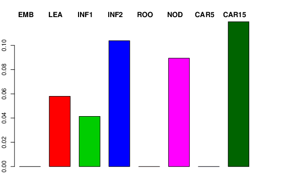 | ROO | Roots from the seedlings (10 cm shoot stage) | 0 | 0 | 0 | 0 |