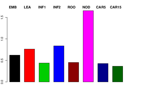 | NOD | Developing tillers at six leaf stage, 3rd internode | 0.285586 | 0.564002 | 0.555551 | 1.65653 |